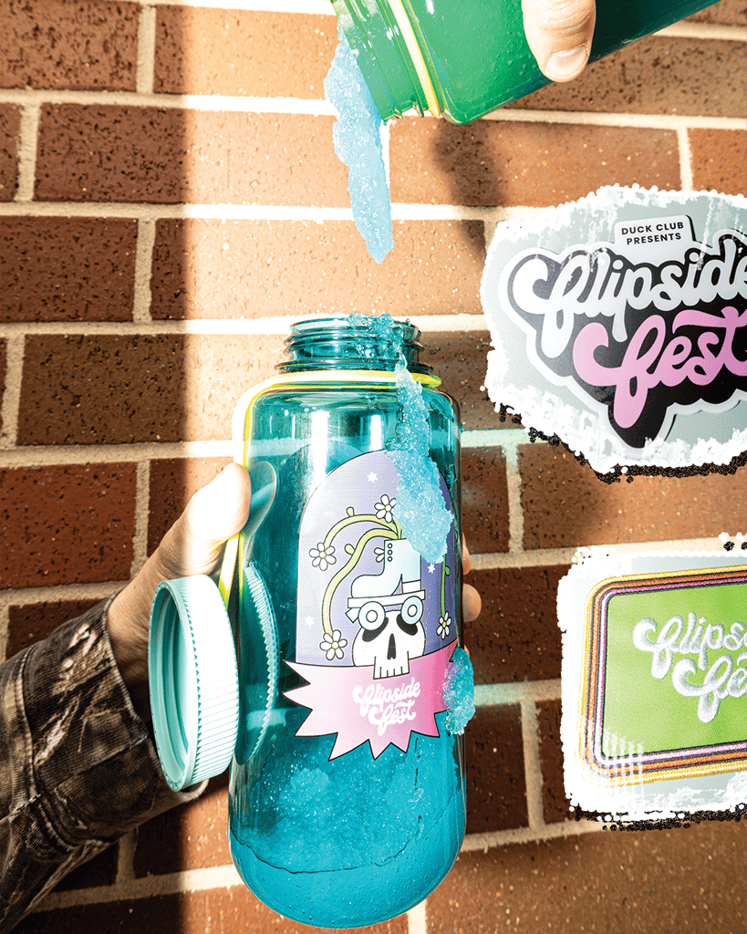 "Hydrate or Dydrate" is what they say, right? From slushies to soda water, this Flipside Fest Nalgene bottle will keep you from feeling parched. Two colors to choose from! Flowering skater skull artwork designed by Art Director, James Lloyd